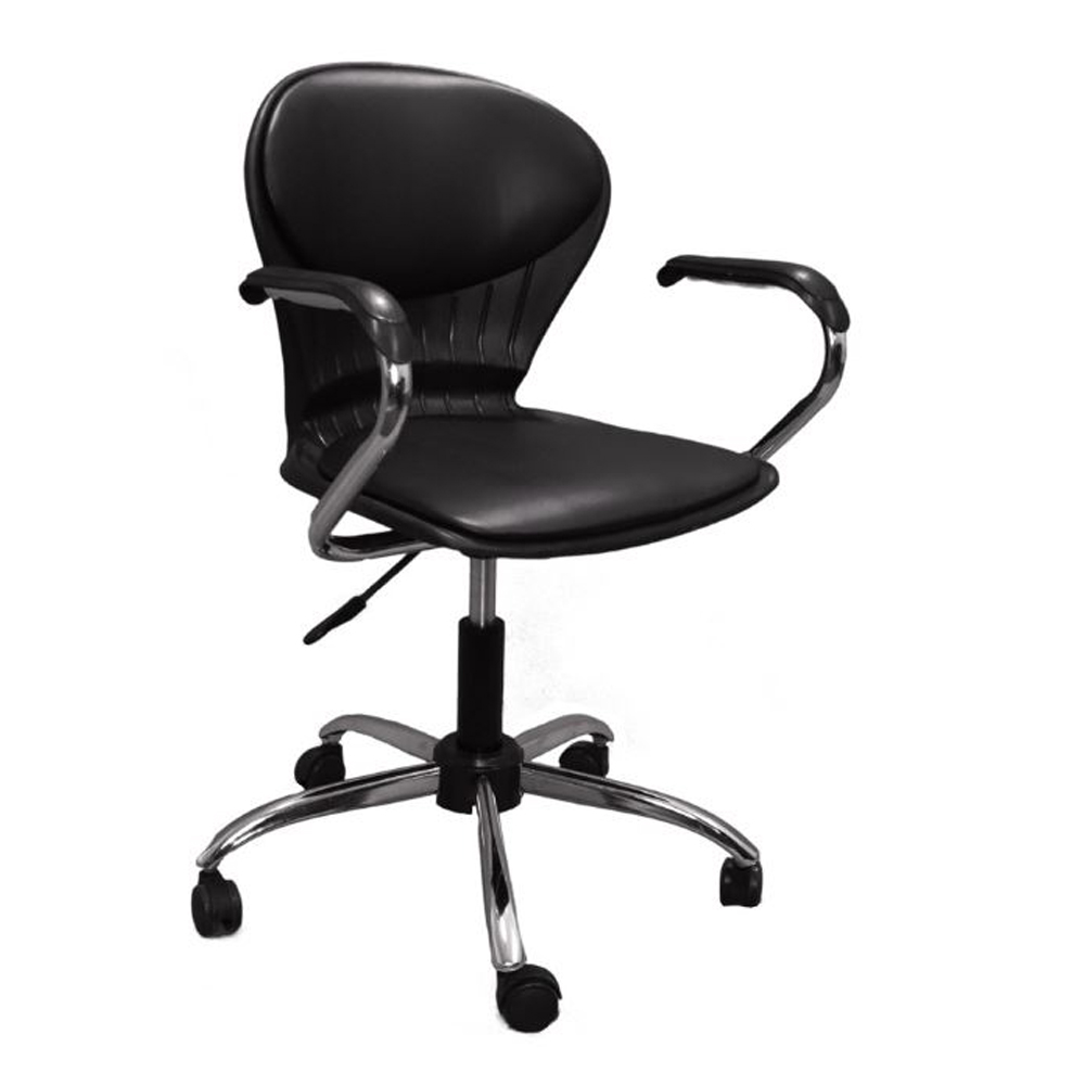 صندلی اداری ارگونومیک مدل صدفی دستهدار از برند مای صندلی، با طراحی ارگونومیک، دستههای فلزی با روکش چرم مصنوعی، پایه کروم پنجپره و چرخهای ساکت، آسایش طولانیمدت در محیط کار را تضمین میکند.