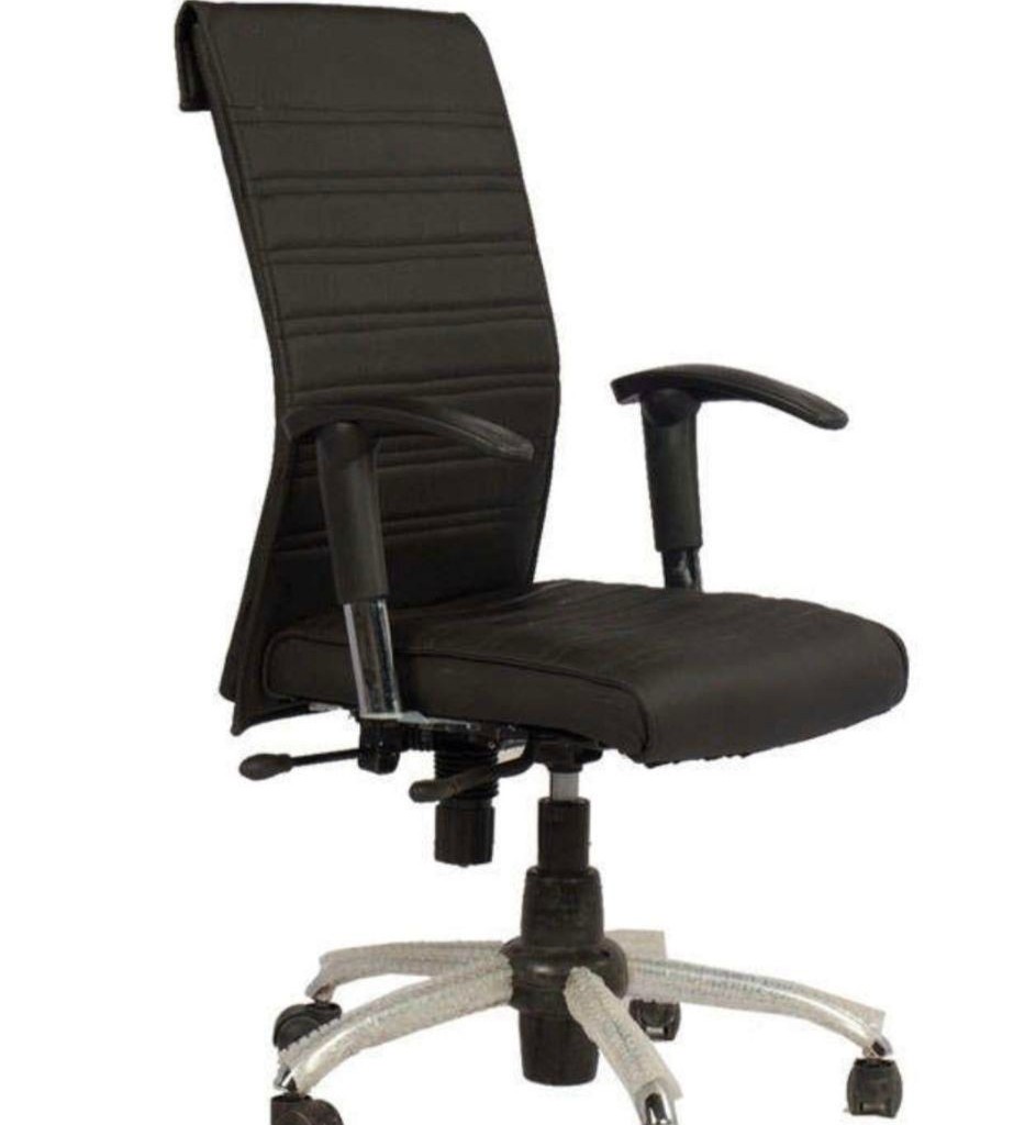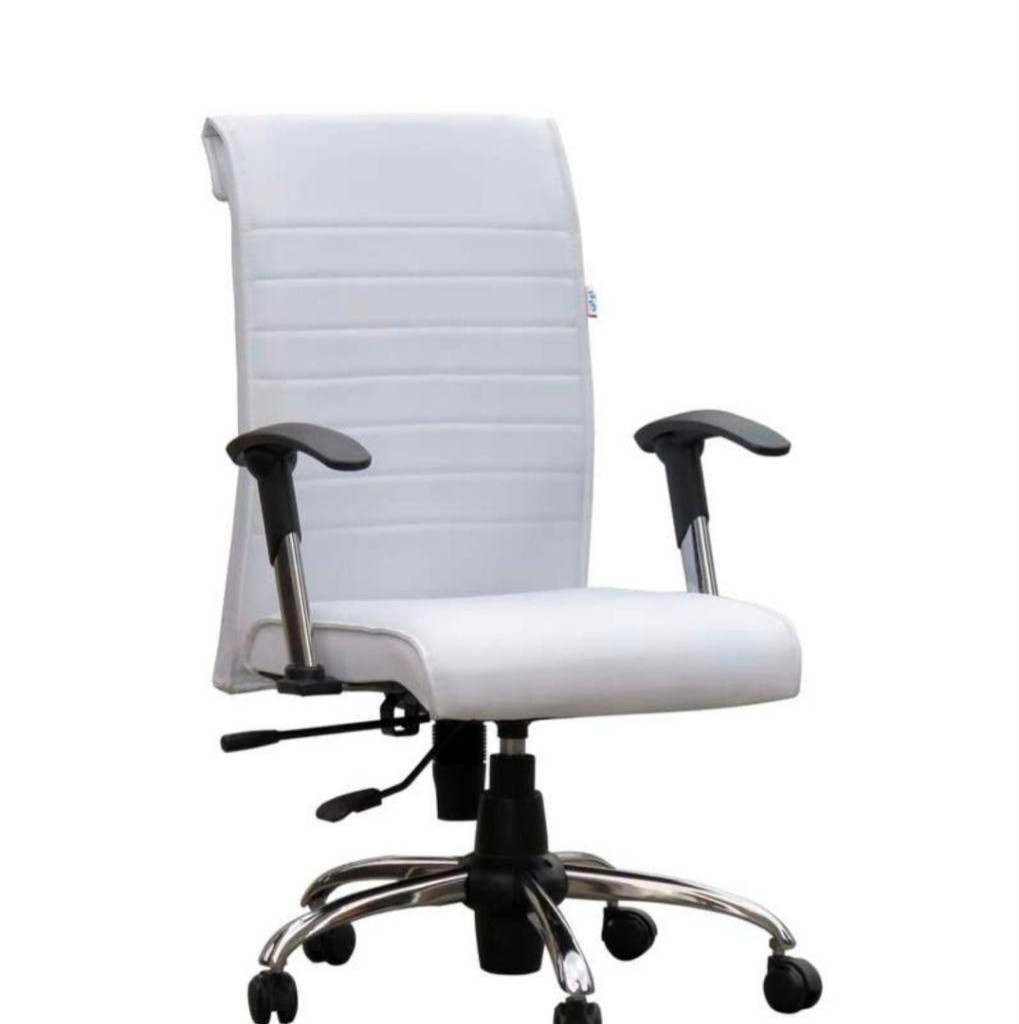 نشیمن دارای فوم سرد فشرده و روکش چرم مصنوعی دوختدار است. پایه فلزی کروم پنج پر با چرخهای پلاستیکی، به همراه مکانیزم جک بالابر و تیلت قابل قفل، راحتی و کارایی را همزمان به ارمغان میآورد.