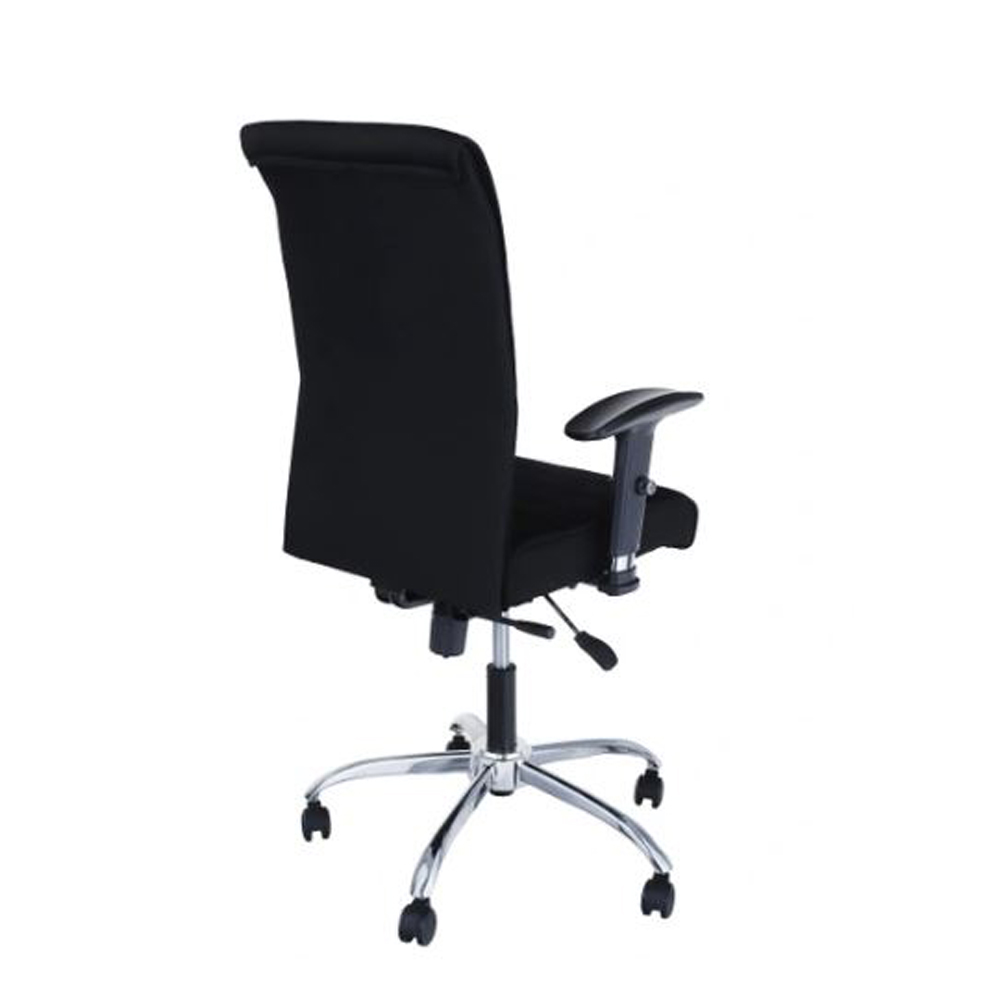 این مدل با دستههای تنظیمی چندحالته، پشتی کرکرهای ارگونومیک و روکش چرم مصنوعی دوختدار طراحی شده تا راحتی طولانیمدت در محیطهای اداری را تضمین کند.